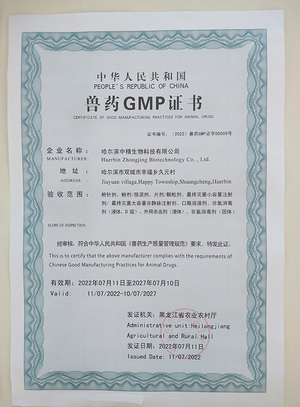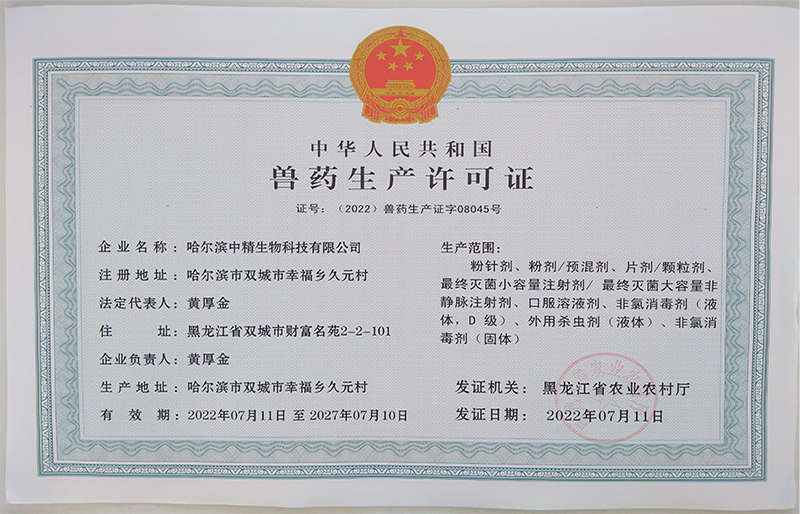 哈爾濱中精生物科技有限公司順利通過新版獸藥GMP認證